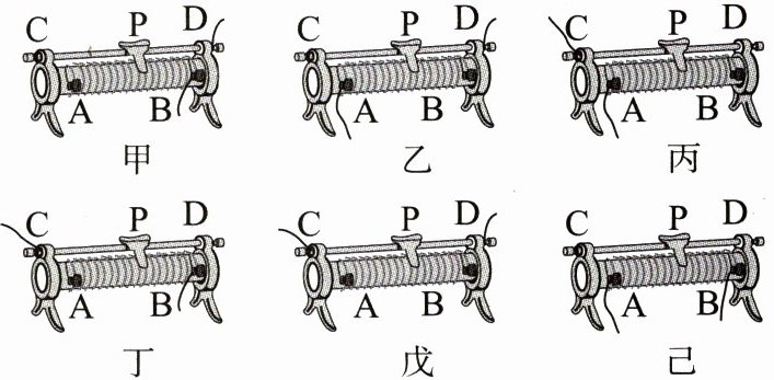 的接法。滑片向右移动,能使灯泡变暗的是图乙、丙
