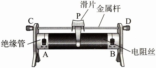 个接线柱。滑片P通过金属杆与上面