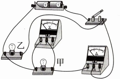 8. 如图所示,闭合开关,甲、乙两灯泡均发光,过一会儿,其中一个灯泡突然熄灭,一个电表指针仍明显偏转,另一个电表示数为 $0$。造成此现象的原因可能是 (