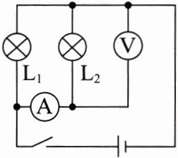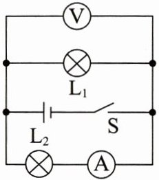 7. 如图所示的电路,灯 $L_{1}$、$L_{2}$ 规格相同,闭合开关,只有一盏灯亮,电流表无示数,电压表有示数,其故障可能是 (