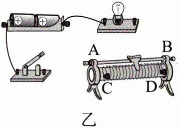 来改变电阻大小的。(2) 实验器材如图乙所示,根据图甲连接图乙时,下列接法正确的有