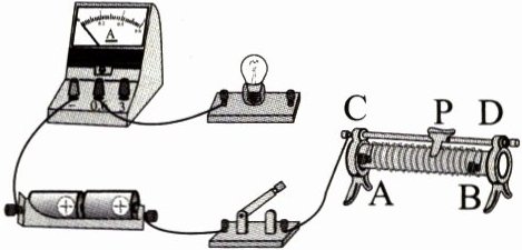 ;闭合开关,调节灯泡亮度时,滑动变阻器的作用是改变电路中的电流