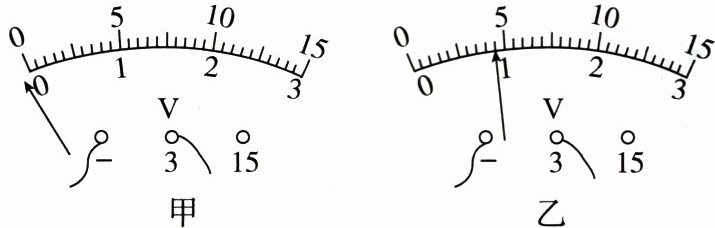 6. 小明测量电压时,电路连接正确,若开关闭合前,电压表指针出现图甲所示情况,则接下来应进行的操作是