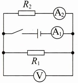 4. (泰安中考)如图所示的电路,电源电压保持不变。闭合开关后,电路中各元件正常工作,两个相同的电流表(均有$0~0.6A$,$0~3A$两个测量范围)指针偏转的角度相同。一段时间后,电流表$A_1指针偏转的角度突然变为原来的\frac{1}{5}$,电阻为$R_1或R_2$的定值电阻出现了断路故障,其他元件均完好。针对故障电路的观察分析,下列说法正确的是(