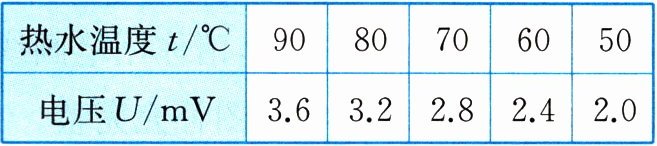 (4)根据表中的数据,电压表的示数为$3mV$时,热水的温度约为