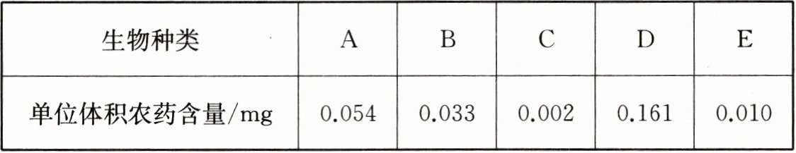 20. 如表是对几种生物体内农药含量的测定结果,这些生物与生物之间有着吃与被吃的关系。据表分析,下列食物链正确的是( )