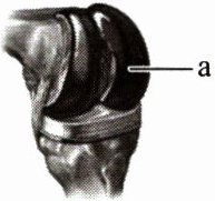 10. 如果膝关节已严重磨损,往往需要置换人工关节(如图)。其中的 a 相当于人体关节中的( )