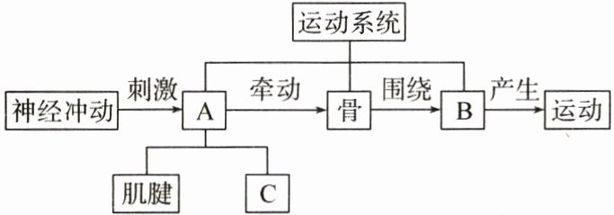 (1)运动系统中结构 A 是____,它由肌腱和[C]____组成。