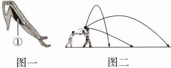 (2)康康在掷实心球时,图一中①处于____状态,牵动____绕关节活动,使手臂伸直,将球掷出。这个过程中至少有____组肌肉配合完成。