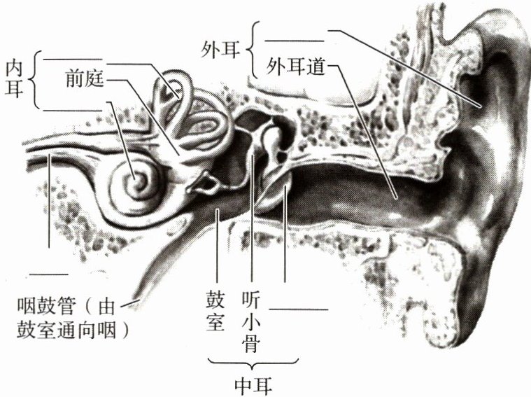 半规管 耳蜗 耳郭 听神经 鼓膜