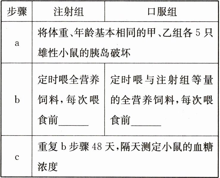 ②补全步骤b中的信息:注射组为______,口服组为______。