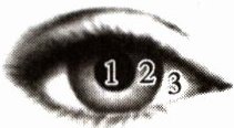1. 芳芳同学在学完眼球的结构后,自己动手画了一只眼睛(如图)。下列 1、2、3 的结构名称标注正确的是( )