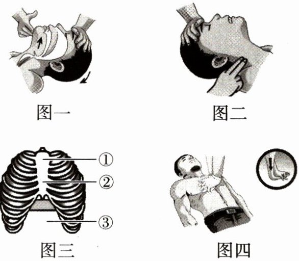 (3)图三中胸外按压的正确部位是[ ]。