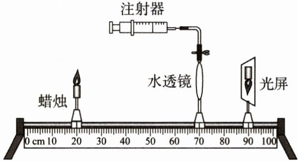 11. 某实验小组用光屏、蜡烛、注射器和水透镜(注射器注水或抽水可改变水透镜的凸度)等制作了如图所示的模拟眼球成像装置。该装置中模拟晶状体的是( )