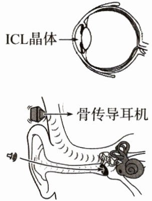 12. 如图,ICL 晶体植入手术可以矫正近视,植入的 ICL 晶体相当于______;骨传导耳机可以减小声音对鼓膜的损伤,戴上耳机听音乐时,感受声音刺激并产生神经冲动的部位是______( )