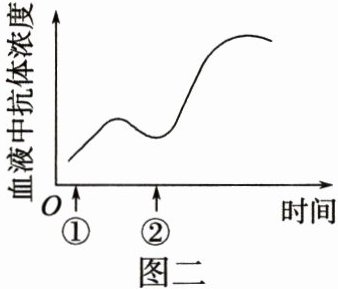 D.疫苗相当于抗原,由图二可知,①和②注射的抗原相同