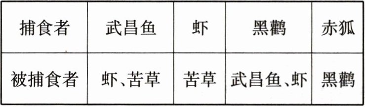 (2)若结合表中的捕食信息,则包含黑鹳的食物链有______条。武昌鱼和虾之间的关系是______。