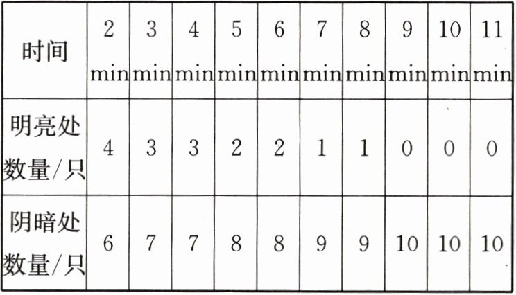 |明亮处数量/只|4|3|3|2|2|1|1|0|0|0|