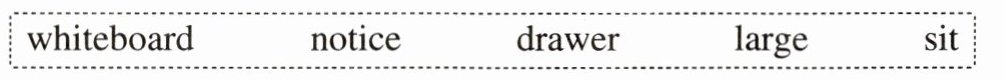 6. large 7. whiteboard 8. drawer 9. notices 10. sits