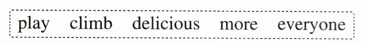 1. delicious 2. Everyone 3. more 4. play 5. climbs