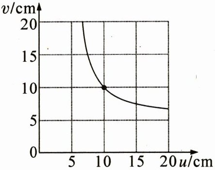变式:同学在“探究凸透镜成像规律”的实验中,绘制了如图所示的图像($v$表示像到凸透镜的距离,$u$表示物体到凸透镜的距离),由图像可知该凸透镜的焦距为