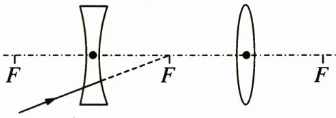 练2. (2024年枣庄市)如图所示,一束光射向凹透镜,请画出该光经过凹透镜、凸透镜的折射光路.