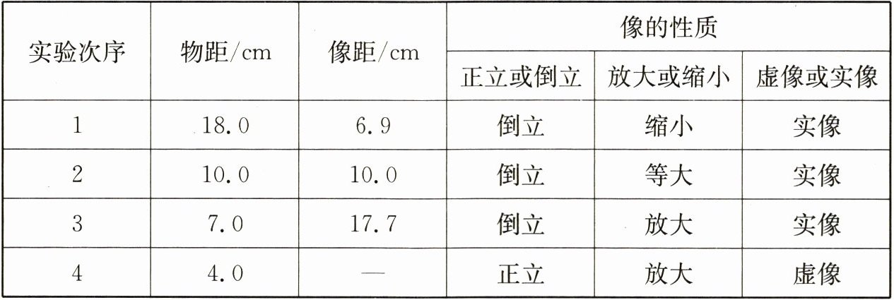 (3)改变物距,重复上述操作,多次实验,将实验数据记录在表中.