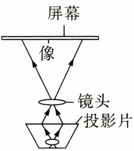 (1)他们将投影片放在载物台上,调节镜头的位置,屏幕上出现清晰、倒立、放大的实像,是因为投影片放在了距离镜头