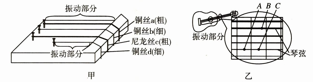.(2) 请你根据图乙判断,在松紧相同的情况下,分别按住A、B、C三点后拨动琴弦,按住