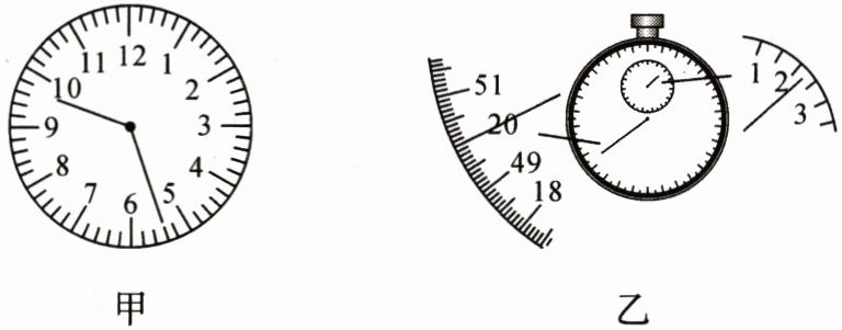 ▶典例4:如图所示是两种常用的测量时间的工具,其中甲表是石英钟,它的分度值是