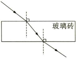 ▶典例3:一束光射向一块玻璃砖,画出这束光进入玻璃砖和离开玻璃后的光路图.