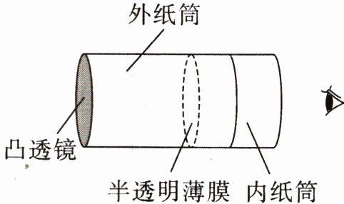 7. 如图是小明在综合实践活动中制作的照相机模型,通过调节内外纸筒的相对距离,可以在半透明薄膜上看到远处景物倒立的像. 关于此照相机模型,下列说法