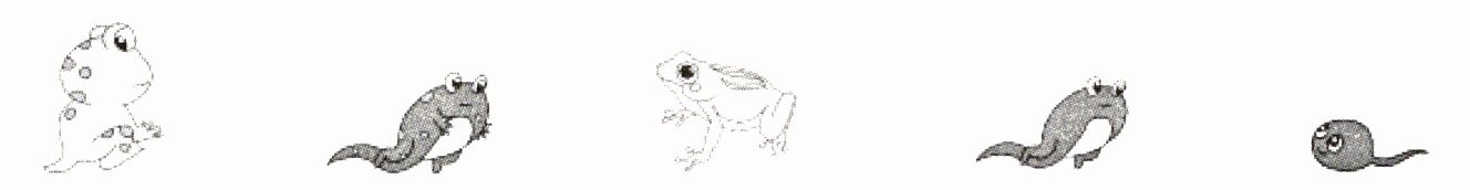 1.小小蝌蚪变变变。小蝌蚪是怎样长成青蛙的?按顺序排一排,标上序号。