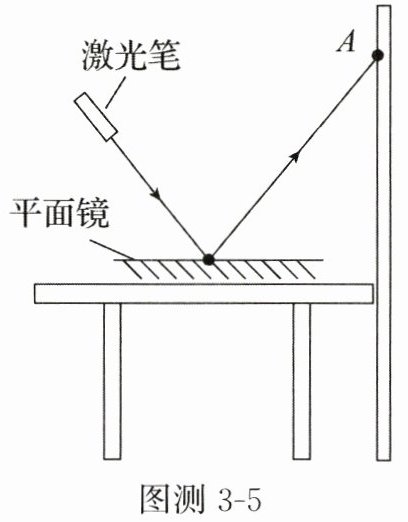 17. 王老师做了如下实验:把一块平面镜放在水平桌面上,将一束红色激光射向平面镜,在墙上 A 点出现一个红色光斑,如图测 3 - 5 所示。