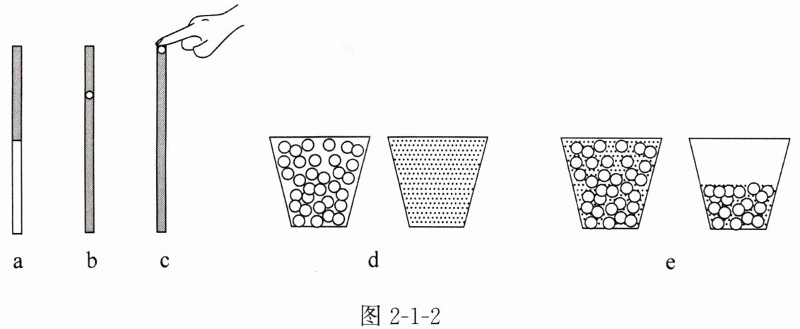 2. 图中d、e为两个装满小球的杯子,d杯中球多且密,e杯中球少且疏。