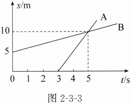10. 沿同一条直线向东运动的物体$A$、$B$,其运动距离$s$随时间$t$变化的图像如图2-3-3所示。(对应目标:812305)