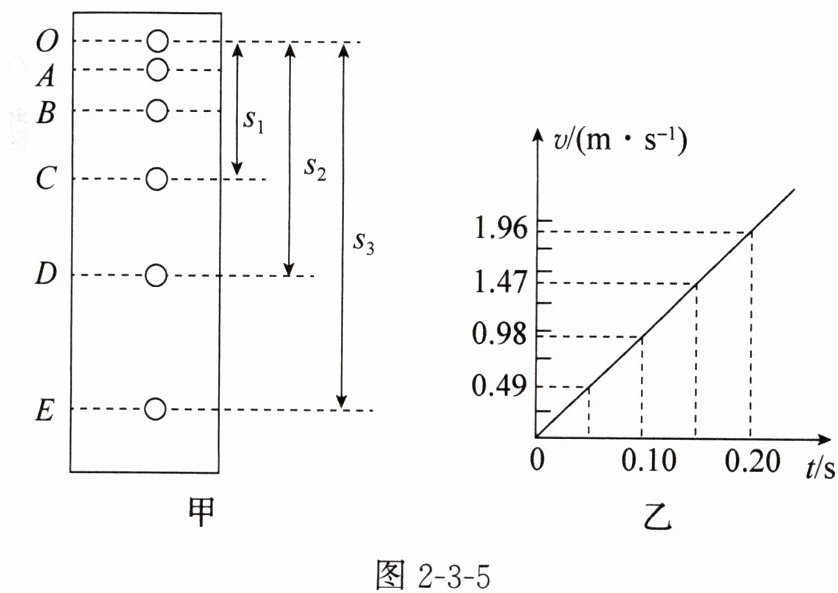 (2)若鸡蛋从$30$楼掉落到地面的时间约为$5\ s$,请根据图2-3-5乙的图像算出从$30$楼掉下的鸡蛋落地瞬间的速度。