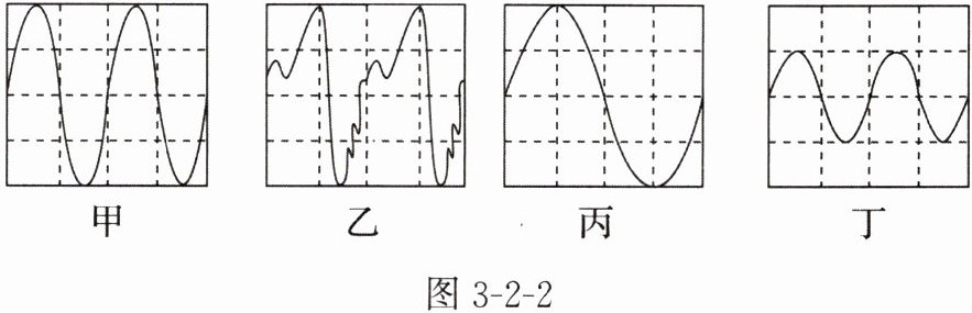 10. 声音的波形图分别如图 3-2-2 中的甲、乙、丙、丁所示,其中响度最小的是