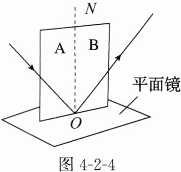 6. 小华用如图4-2-4所示装置做“探究光的反射定律”实验,图中纸板B可沿折缝ON向前或向后翻折。现让一束光紧帖纸板A射向O点,则(