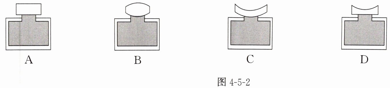 2. 很多人喜欢在汽车的中控台上放置香水,其实这是非常危险的。香水的主要成分是易燃酒精,现在有四瓶外包装为玻璃的相同的香水如图 4 - 5 - 2 所示,其中在阳光下最容易引发火灾的是(