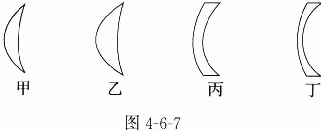 m;小芳仔细观察镜片的形状和厚度,把四种镜片的截面图画成了图4-6-7中甲、乙、丙、丁所示的形状,则度数较大的远视眼应佩戴的镜片是乙