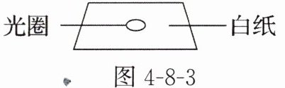 8. 如图4-8-3所示,将红色透明塑料薄膜蒙在硬纸板的圆孔上,让太阳光透过硬纸板的圆孔,则在下方白纸上看到光斑的颜色是______;用一束红色激光照射到一个白色气球表面,若要将气球射破,则在气球上被照亮的区域涂成______(选填“红”或“绿”)色较容易达成。(对应目标:814803)