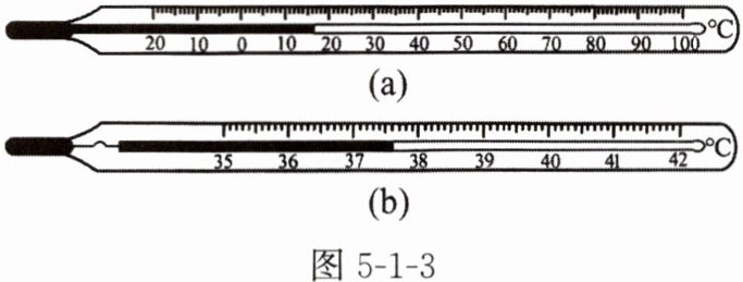 $^{\circ}C$;如图 5 - 1 - 3b 所示的体温计,它的分度值为0.1