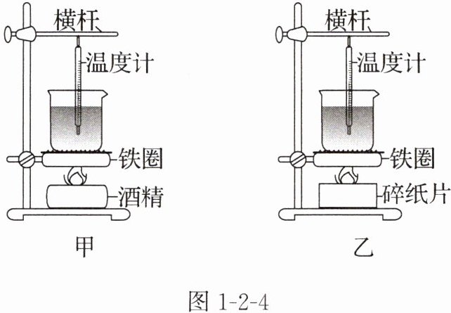 (1)实验装置如图1-2-4甲、乙所示,其中横杆、温度计、铁圈、燃具等实验器材的安装顺序是