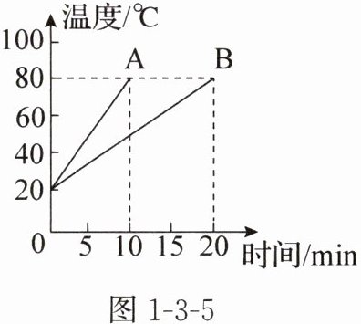 7. 给质量为 $ m_{A} $、比热容为 $ c_{A} $ 的物体 $ A $ 和质量为 $ m_{B} $、比热容为 $ c_{B} $ 的物体 $ B $ 加热,加热源和加热方式都相同,物体 $ A $、$ B $ 的温度随加热时间的变化如图 1 - 3 - 5 所示,根据图像可得出的正确结论是(