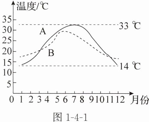 1. 同一纬度海拔相近的沿海城市甲和内陆城市乙的年平均气温的变化曲线如图1-4-1所示。下列说法正确的是(