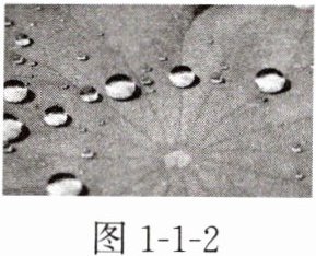 8. 如图1-1-2所示,荷叶上的水珠如颗颗珍珠一般,摇一摇荷叶,水珠会很快滑落,荷叶上竟然滴水不沾。下列关于荷叶上水珠的说法正确的是(