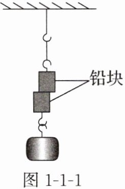 2. 如图1-1-1所示,将两个底面干净、平整的铅块紧压在一起,两个铅块就会结合在一起,即使在下面吊一个较重的物体也不会被拉开。此现象说明(