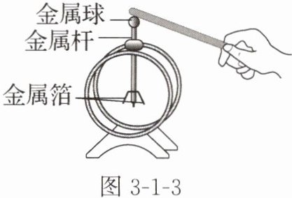 5. 验电器的示意图如图 3 - 1 - 3 所示,当用毛皮摩擦过的橡胶棒接触验电器的金属球时,发现金属箔张开,下列有关说法正确的是(