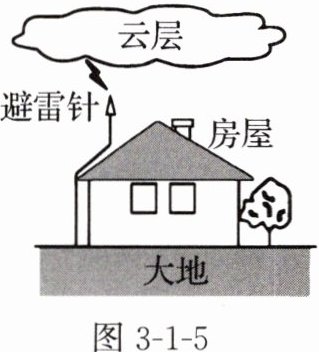 9. 避雷针可以避免建筑物遭受雷电的破坏,闪电产生的电流通过避雷针的示意图如图 3 - 1 - 5 所示(云层接触避雷针前带正电),则云层
